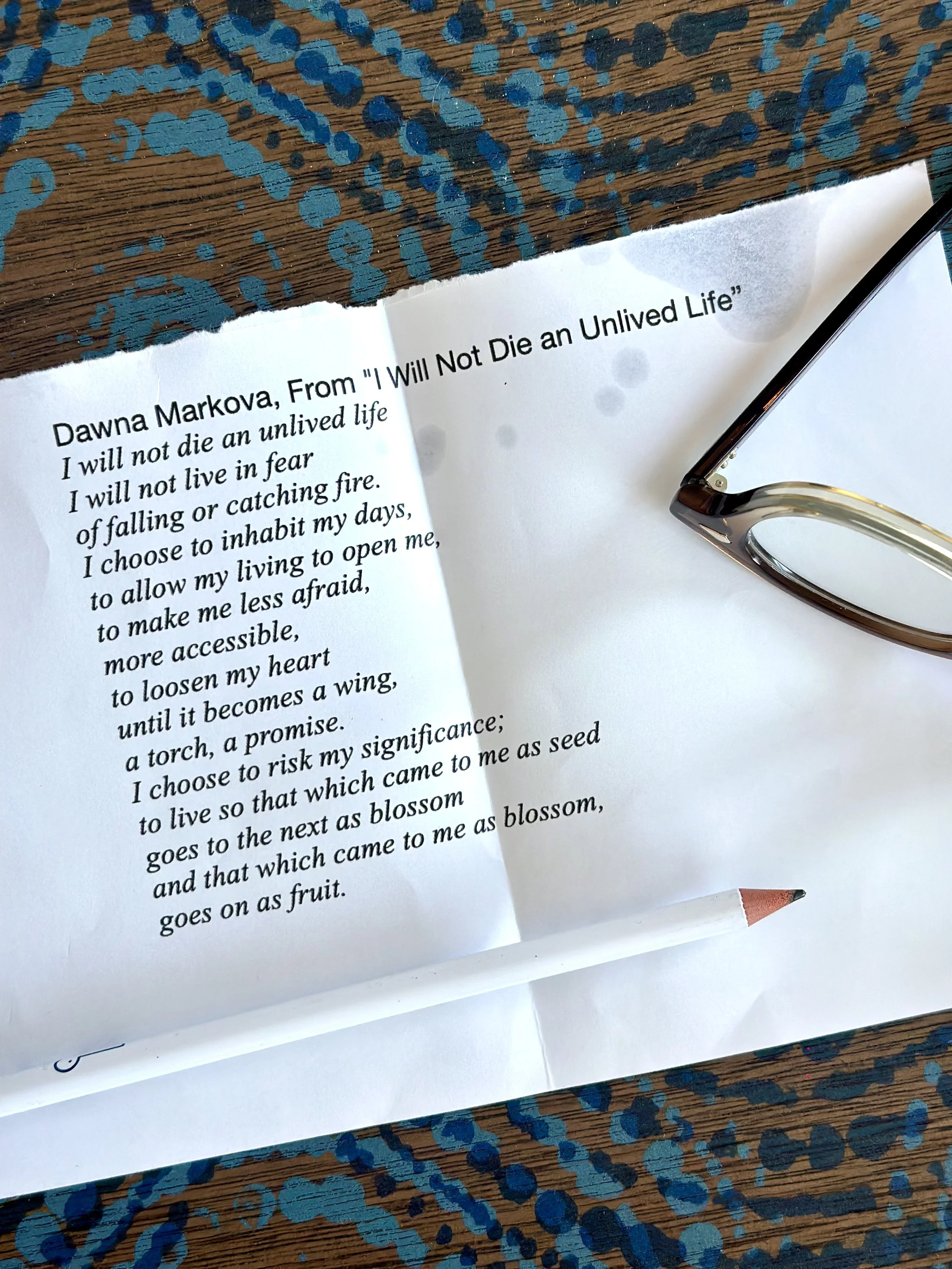 "I choose to inhabit my days, / to allow my living to open me... / to loosen my heart / until it becomes a wing, / a torch, a promise."
